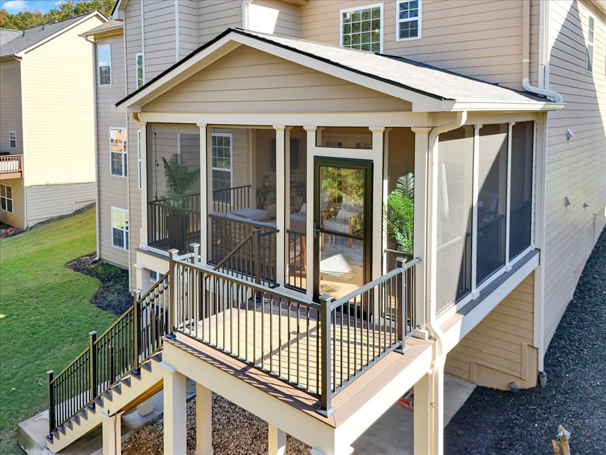 Mornings start with kids headed to the 10-out-of-10 ranked South Forsyth High School while coffee is poured in the great room-to-kitchen hub. French doors open to the new screened TimberTech deck for a few quiet minutes of fresh air and conversation before the day gets moving.