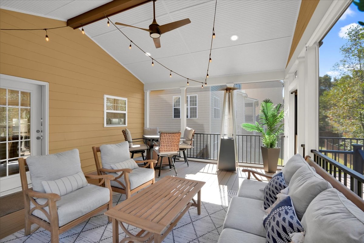 Weekends stretch out on the screened deck - morning coffee, evening game-watch, and year-round use thanks to lighting and fans. Friends drift between the kitchen, deck, and yard without missing a play.