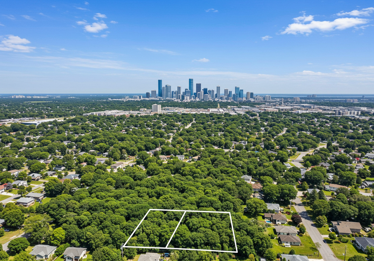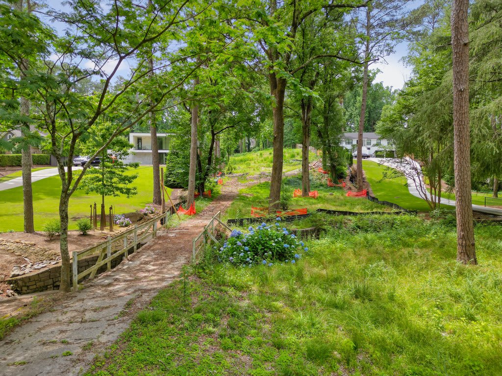 Once upon a time, in a bustling kingdom nestled in the heart of the city, there was a royal family who dreamed of building a magical castle. One day, they crossed over a sparkling babbling brook and discovered the most enchanted land. This land, 1.38 acres wide, was hidden on a hilltop in the prestigious Pine Hills community. With tall, whispering trees and a gentle stream running through the deep lot, it felt like a secret retreat from the busy world beyond.